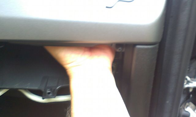 Komentarz do pliku: Po wykręceniu tego wkręta zostało nam tylko włożyć rękę od środka i delikatnie wypchnąć kratkę do środka kabiny. Nie potrzeba do tego naprawdę wielkiej siły! Jeżeli ktoś ma szczupłą dłoń to nie musi odkręcać tej półeczki co jest w środku schowka, trzyma się ona na dwóch widocznych wkrętach torks - ja musiałem.