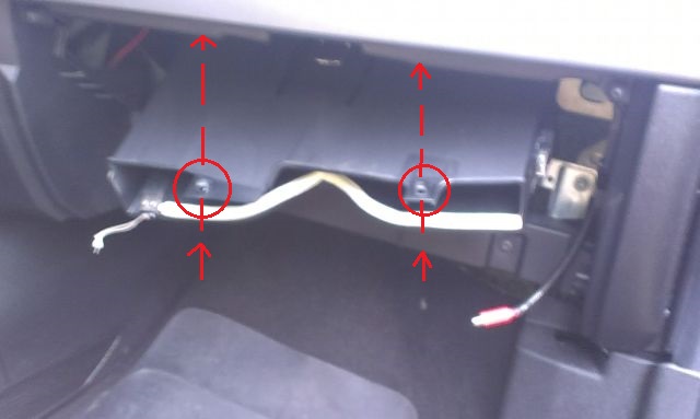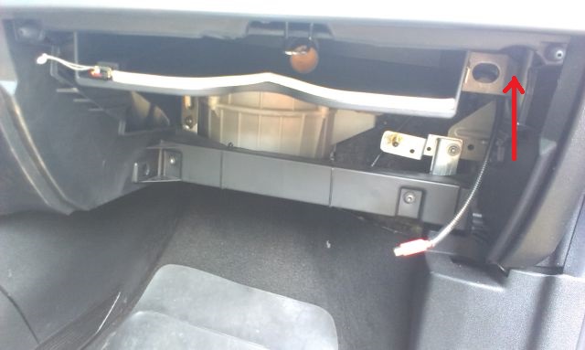 Komentarz do pliku: Po wykręceniu tego wkręta zostało nam tylko włożyć rękę od środka i delikatnie wypchnąć kratkę do środka kabiny. Nie potrzeba do tego naprawdę wielkiej siły! Jeżeli ktoś ma szczupłą dłoń to nie musi odkręcać tej półeczki co jest w środku schowka, trzyma się ona na dwóch widocznych wkrętach torks - ja musiałem.