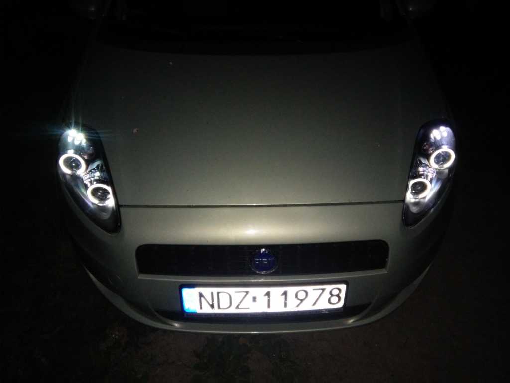 Ringi w nocy świecą ładnie (same postojówki), jednak nie radziłbym się sugerować zbyt bardzo tymi zdjęciami bo w pewnym sensie oszukują. Na tych zdjęciach wyraźnie widać porządne światło w obwódce ringów niemalże jakby to były ledy, ale te światło na zdjęciu jest bardziej skupione i wyraźne i tak wygląda tylko na zdjęciu. W rzeczywistości ring jest podświetlany jedną żarówką (tak mi się wydaje) i rzeczywiście nie świeci tak mocno jakbym chciał, a zwłaszcza z włączonymi światłami mijania. Nie sprawdziłem tego jeszcze na "mijance" samochodów jak się prezentują ale widzę że przy włączonych światłach mijania ringi słabo świecą w porównaniu np. do tych dodatkowych ledów u góry które już naprawdę ładnie się wyróżniają. Natomiast same ringi + ledy w nocy wyglądają fajnie, dopiero gdy dochodzą światła mijania to niestety ringi już trochę są przyćmione i mniej widoczne a oczywiście bez świateł mijania w nocy sobie nie pojeżdżę... Zdjęcia na kostce brukowej pokazują włączone ringi w słoneczny dzień kiedy słońce raczej pada od tyłu. No i jak widać w takiej sytuacji słabiutko widać ringi a nawet ledy. Zdjęcia może nie są świetnej jakości i też oszukują bo ledy w rzeczywistości widać trochę lepiej (chociaż świateł dziennych to z nich nie będzie) ale wystarczająco pokazują że po prostu tego światła prawie że nie widać. Zdjęcia na podwórku to najlepszy efekt tych reflektorów w dzień. Tutaj słońce pada na przód samochodu a światło bardzo fajnie odbija się w ringach i efekt jest świetny. Ringi są wyłączone wiec myślę że przy włączonych może być jeszcze lepiej. Również zdjęcia w tym przypadku najlepiej odzwierciedlają rzeczywistą wizualizację. Ogólnie trzeba przyznać że cudów nie ma jeśli chodzi o te reflektory, ringi rzeczywiście świecą za słabo, BMW z tego nie będzie, ale nie jest najgorzej, gdzieś również czytałem że lubią się przepalać takie ringi po jakimś czasie więc może te są słabsze ale za to dłużej poświecą  (tak to sobie tłumaczę). Światła mijania oraz drogowe świecą bardzo przyzwoicie i nie mam zastrzeżeń a efekt wizualny myślę że się dużo poprawił w mojej kropce i przyciąga więcej uwagi, a przecież o to chodzi Co do wtyczek w grande to okazało się że tylko przy lewej lampie miałem nowszą wtyczkę a przy prawej oryginalną, więc ktoś już grzebał i przerabiał wcześniej dlatego miałem problem. Wobec tego lampy tak jak napisał producent pasują do roczników 2005 - 2008