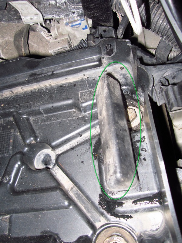 Od strony komory silnika wszystko gotowe. Teraz podnosimy samochód z jednej strony na dwóch podnośnikach (jeśli nie mamy kanału oczywiście  ). Wchodzimy pod samochód i bezpośrednio pod lewarkiem zmiany biegów mamy taką oto osłonę: Załącznik:
