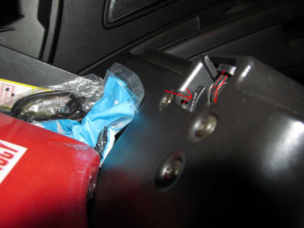 Jak sie zamyka schowek, to moment w ktorym metalowe ucho uderza w zapatke jest kluczowym momentem. Teraz, dzieki temu ze zapatka jest nieco pod skosem (poprzez ten naklejony kawalek plastiku) ucho gladko wskakuje w ta zapatke.