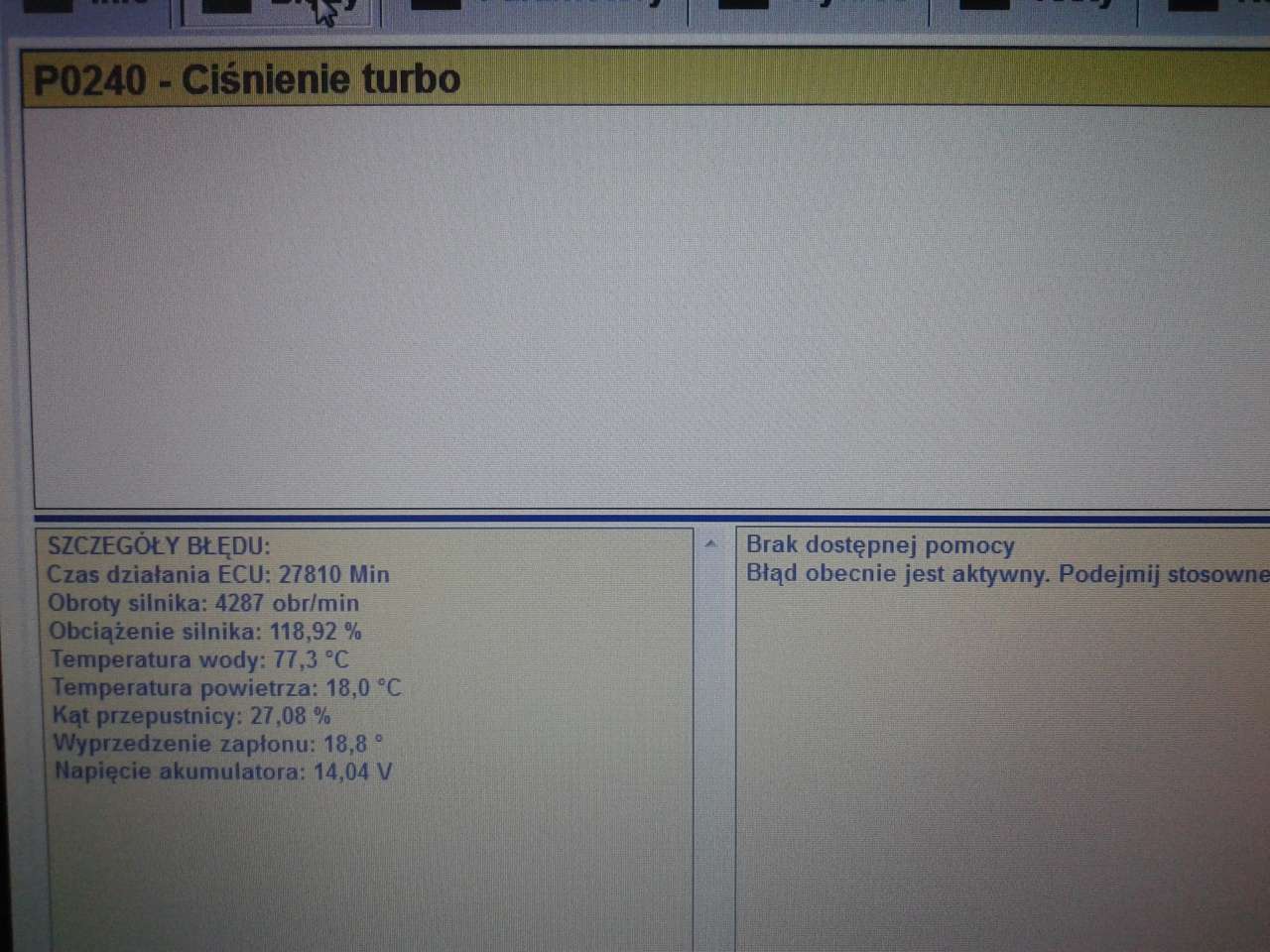 W weekend mialem tak naprawde pierwszą dłuższą przejazdzke autem (okolo 200km). Jadac na trasie ok. 140km/h, nagle przy wcisnieciu pedalu gazu, załączył sie jakby taki hamulec i calkowiecie stracilem moc. Nie moglem przyspieszyc, ale majac wcisniety pedal na maxa moglem utrzymac predkosc (zwolnilem co prawda do 120km/h, ale majac noge w podlodze utrzymalem ja). Zatrzymalem auto, zgasilem i pozniej ponownie podlaczylem i ..... moc wrocila. Bylo dobrze na okolo 30km i znowu to samo sie stalo. Tylko tym razem wyskoczyl blad z checkiem i juz po zgaszeniu auta i ponownym odpaleniu nie chcial zgasnac. Moc jako tako wrocila (cos pomiedzy calkowitym odcieciem turbo a jego prawidlową pracą).