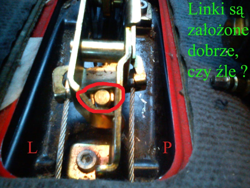 Ja przypuszczam jeszcze, że krzywe ułożenie linek w mk I może wynikać z przekrzywienia się tych blaszek które trzymają "motylek" na pręcie ręcznego. Zaznaczyłem na czerwono co mam na myśli Załącznik: