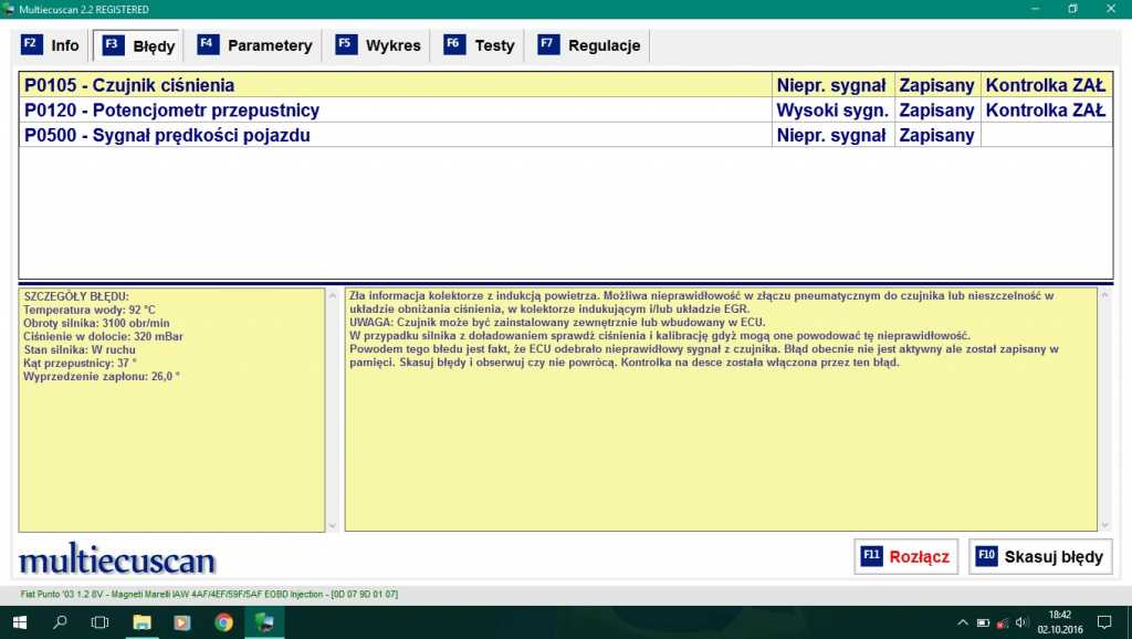 04 Paź 2016, 00:59; Temat postu: Re: Silnik podbija obroty. Dane z multiecuscan. |