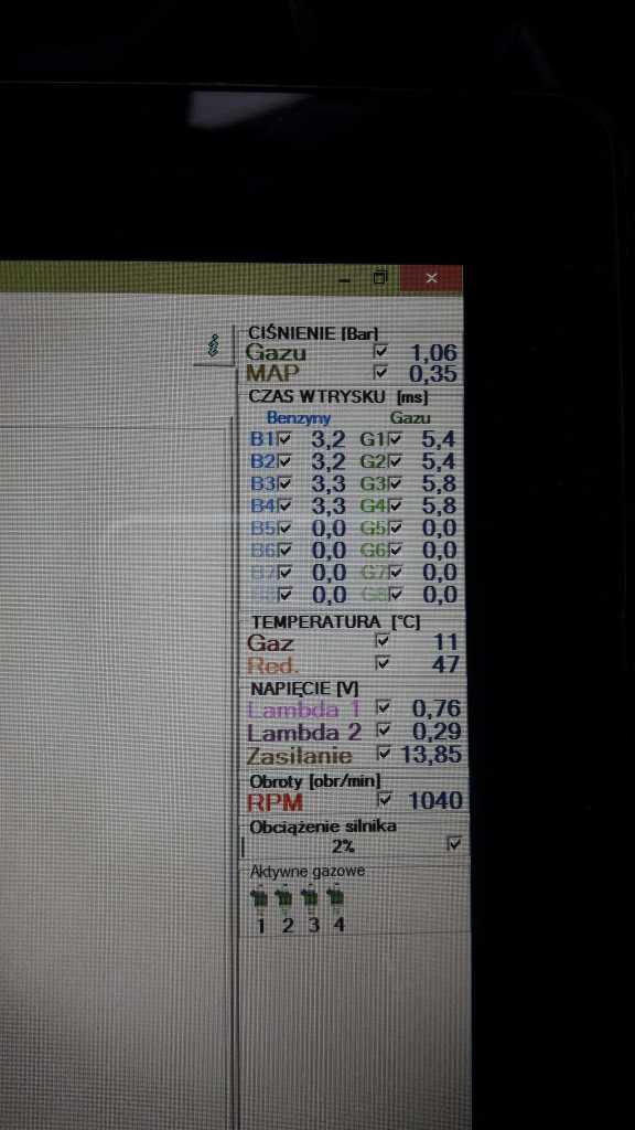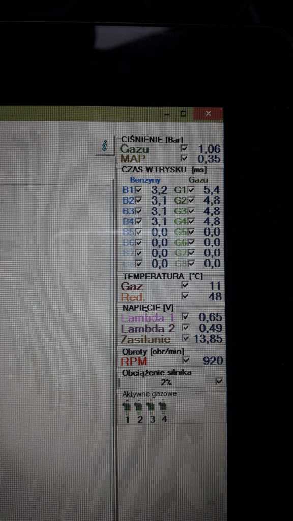 Ok,olej narazie dysze. Odpal auto i je rozgrzej,podłącz kabel do lpg i wyreguluj ciśnienie na reduktorze-powoli kręć śrubką i daj chwilę by program wyłapał zmiany,czasem trzeba też na nowo auto odpalać. Jak już ciśnienie będzie w okolicach 1.10-1.20bara to zrób autoadaptację. Jeżeli mnożnik wyjdzie więcej niż 1.3 to leć do budowlanego po wiertła