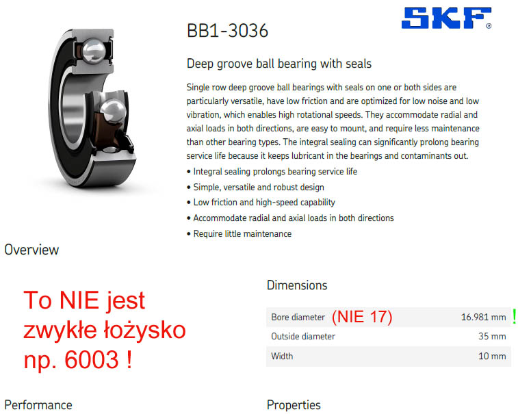 BB1-3036. Średnica wewnętrzna to 16,98 mm (a nie 17 jak w zwyczajnym łożysku np.