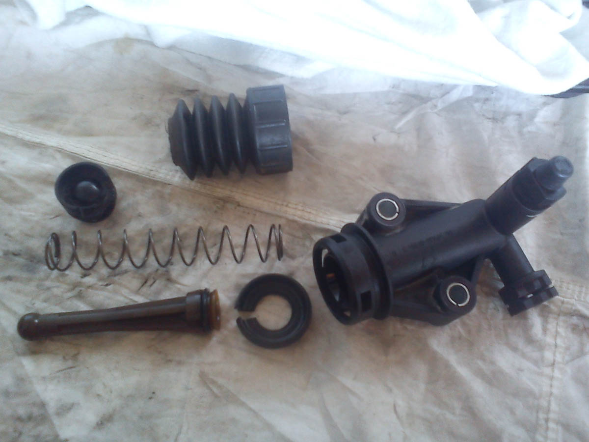 Ten siłowniczek, to prymitywna (wręcz żałosna) konstrukcja. Prosta (prostacka). Rozkłada się to małym śrubokręcikiem, gwoździem nawet (podważenie plastikowego pierścienia rozciętego/sprężystego i wszystko wyskakuje). Dźwignia łapy sprzęgła porusza się po łuku, więc siłowniczek ma (musi mieć) możliwość przychylania się na boki (oprócz tego, że ma przegub, kulkę), ale to z czasem go zużywa (zaczyna się tak, że pod osłoną gumową będzie wilgotno od płynu, z zewnątrz z pozoru OK). Zaglądajcie czasem pod osłonkę (czy dopiero się poci, czy już kapie płyn, wtedy działać - kupić nowy). Uwaga, pozycja montażu też wprowadza przechył i może prowokować wycieki.