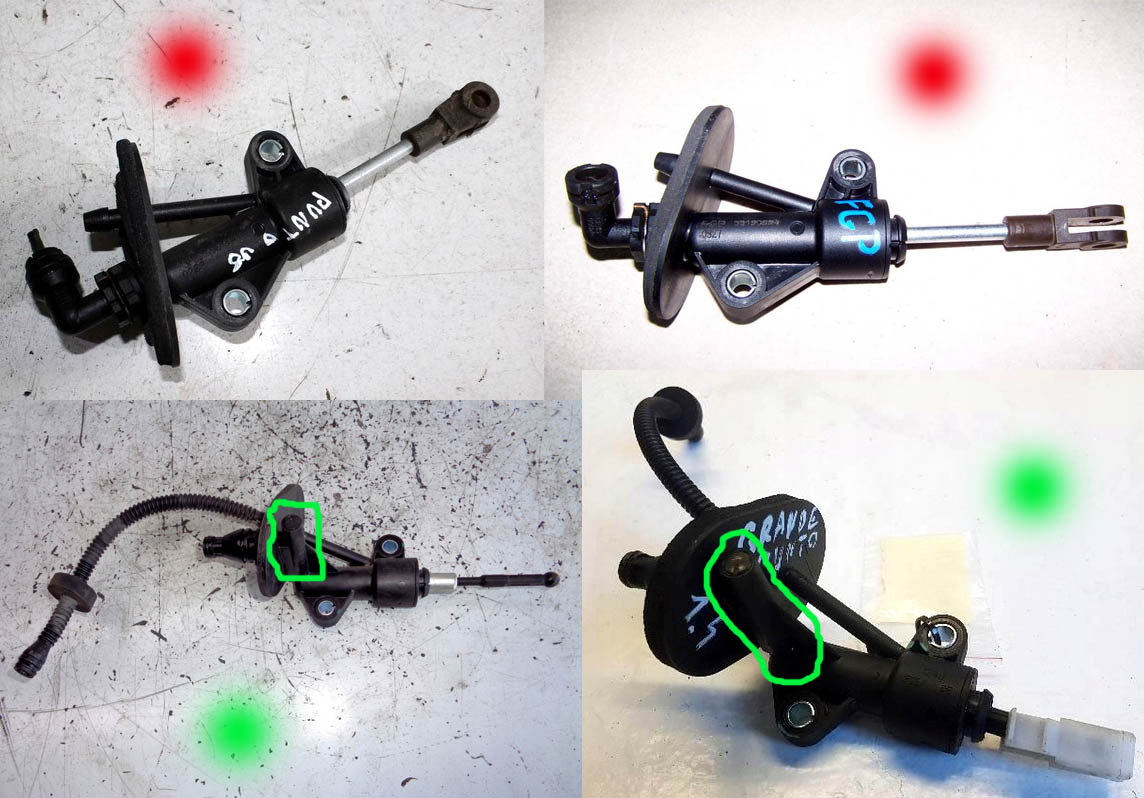 W budowie pomp sprzęgła są widoczne różnice, może to jest podpowiedź. Jedne mają "coś", co sugeruje (z wyglądu), że to jakiś zawór (ograniczenie ciśnienia, "przelew"). Może ta dodatkowa "puszka" na przewodach zastępuje zaworek w pompie? A jak pompa ma ten dodatek, to na przewodach nie trzeba. Pomylenie/pomieszanie części w tej kwestii też może spowodować nadmierne ciśnienie w układzie, a więc i wyciek. Pomijam kwestię montażu, czy się da tak pomylić (zakończenia są inne, mocowania do pedału sprzęgła).