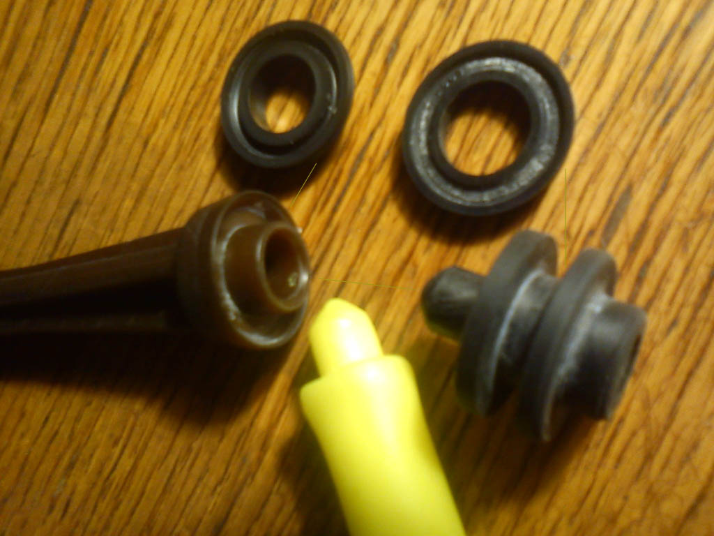 Uszczelniacz jest jeden. Styl przypomina uszczelniacze w cylinderkach (hamulce bębnowe), czy pompach hamulcowych, ale "przeszczepić" się nie da. Tutaj w używanym (zużytym) wysprzęgliku średnica wewnętrzna (u wejścia, w głębi nie miałem czym zmierzyć) była około 20,7-20,8 ("jajo" w korpusie). Według informacji nominalnie to chyba jest 20,6 albo niektóre strony podają 20,64 mm. Są zestawy naprawcze o takim rozmiarze, ale nie wiem, czy do tego konkretnego modelu/producenta by pasowały (z resztą, jak jest wewnątrz wyrobiony, jajowaty otwór, to by i tak nie pomogło).