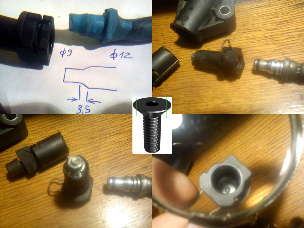 nie jest śruba. Dowalanie kluczami nic nie da (nawet jest niemożliwe, można go ukręcić). Niestety z góry na samochodzie tego nie widać (że tam jest ograniczenie). Wewnątrz nic nie ma (żadnej uszczelki, tylko na docisk, doczołowo, czy jak proste uszczelnienie labiryntowe), dwa otworki się zgrywają lub nie i tyle.