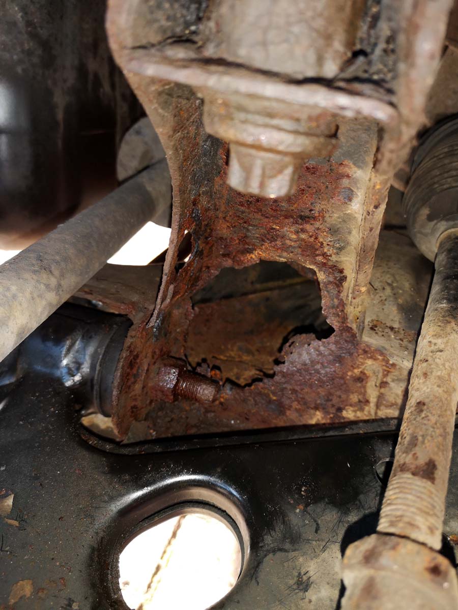 Uzupełnienie tematu, przykład korozji belki (sanek, wózka, trawersy) przedniej. Ładna dziura.  Załącznik: