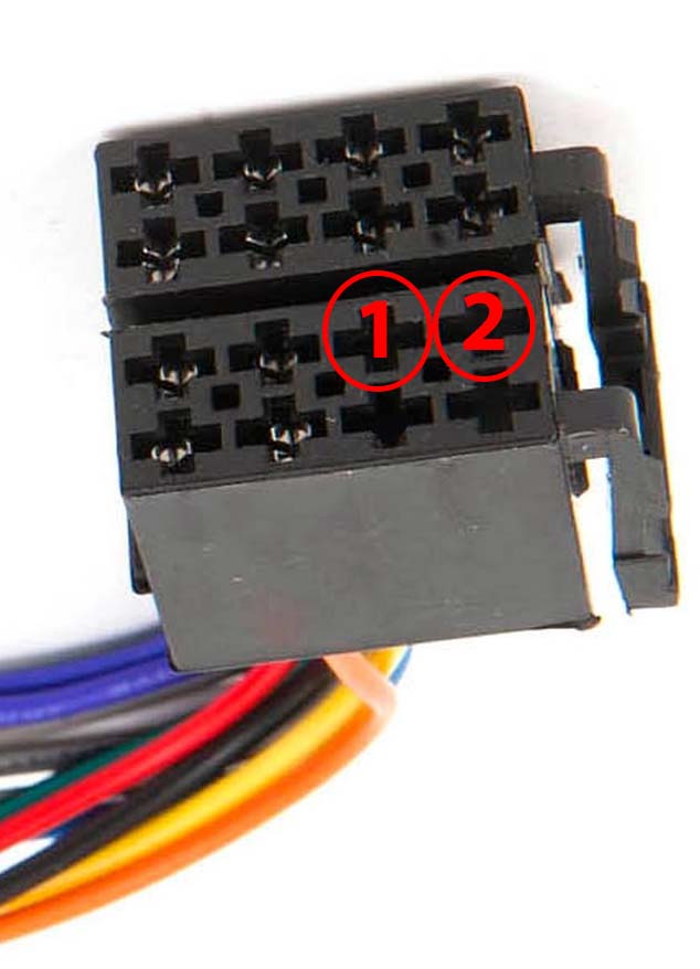Na schemacie widać w które miejsca kable muszą być podpięte od strony radia. Jest też widok wtyczki. Numer 1 to CAN A, numer 2 to CAN B.