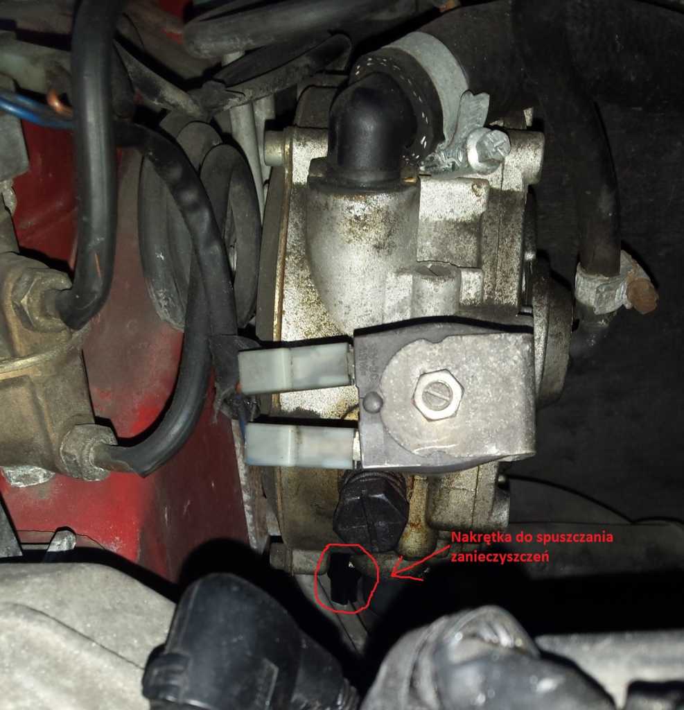 INSTRUKCJA 1.Nie trzeba zakręcać zaworu gazu z tyłu przy zbiorniku. 2.Silnik musi być rozgrzany najlepiej jakby się jeździło na LPG:) tak żeby parownik był gorący 3.Szukamy śruby do spuszczania i odkręcamy ją,(na rys. spust zanieczyszczeń), możemy coś podłożyć żeby nie polało po bebechach hanki lub też wylać ,nie będzie tego zbyt dużo (może ze dwie setki) ...taki ciemny przepalony olej o zapachu miksol'u.., zostawić na chwilkę. 4.Zakręcamy i gotowe w innych modelach może być to inna śruba także ostrożnie bo pokręcicie złą i rozregulujecie to urządzenie... to tyle ode mnie. A tutaj zdjęcia z mojego czyszczenia: Załącznik: