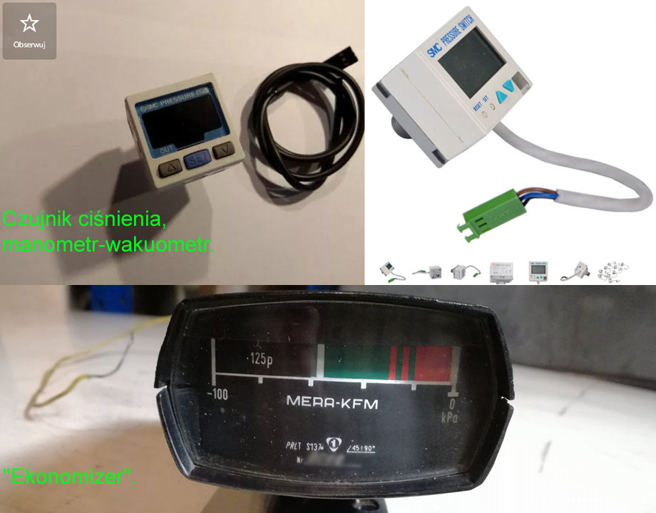 Tak, czujnik zmienia kolor wyświetlacza (zielony/czerwony), zależnie od ustawionej wartości progowej. Czyli wypisz-wymaluj "ekonomizer" (można sobie zaprogramować zielone i czerwone pole). Można się wzorować na starych wakuometrach, działanie i wartości próżni są chyba identyczne (lub bardzo podobne) i dla dzisiejszych silników na wtrysku, jak dla gaźnikowych.
