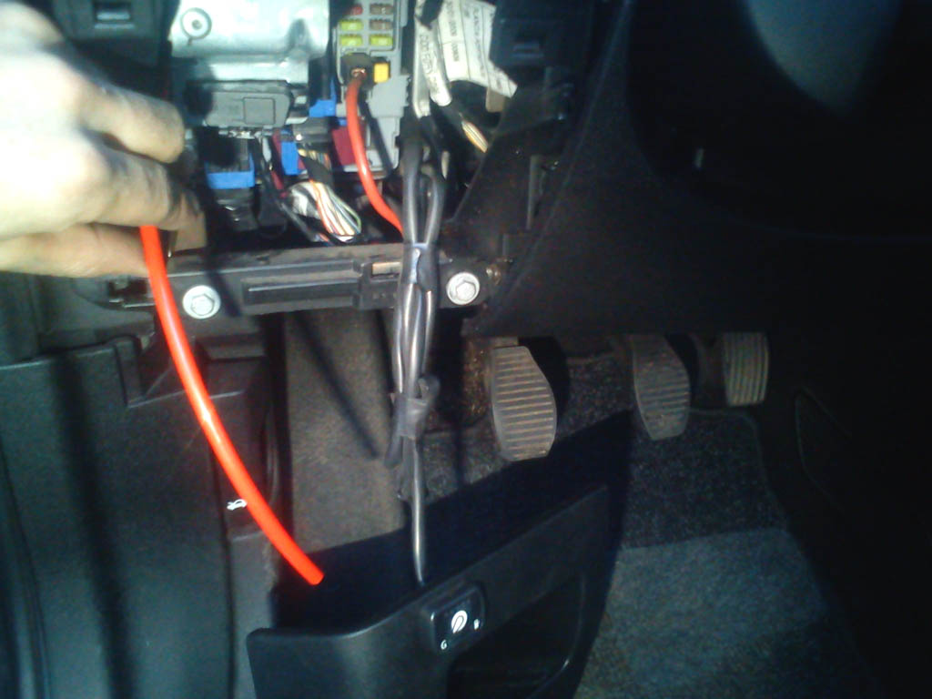 Prowadzenie przewodu powinno być przemyślane, aby go gdzieś nie wciągnęło, ani nie przegrzewało (np. nagrzewnicy nie powinien dotykać). Radia nie trzeba wyjmować (było wyjęte do wymiany żaróweczek podświetlenia), tylko osłonę boczną tunelu przy kierowcy.