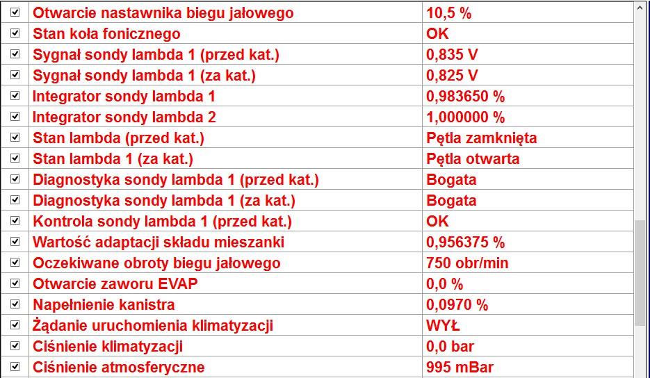 W załączeniu dodaje screeny z MES'a na ciepłym silniku i PB. Jutro wstawię screeny na zimnym.