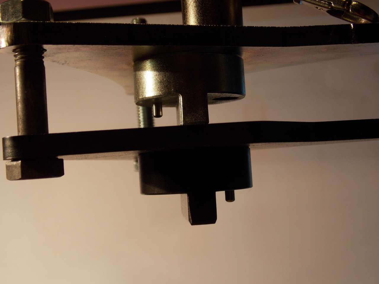 Samo posiadanie i użycie blokad NIE robi z nikogo "fachowca". Tam są "poziomy zaawansowania" jak wszędzie. Masz blokady, ale one mają luz (no i co teraz?). Dokręcasz wariator i w trakcie może uciekać ustawienie (większość nie zauważy tego). Wymieniasz simering wału i łamiesz "klin" (wpust) koła i tak dalej... Prototyp, idea wstępna (tak, wiem, ch*jowe, jak wszystko na forum internetowym). Przypadkowe elementy ze złomu, ale aluminium, aby nie kaleczyło głowicy. Oprócz blokady wałka, chodzi o wzmocnienie głowicy, bo bez pokrywy to "otwarty profil" ("U", a raczej "E"), trzeba go czymś zamknąć, a później opierać o to klucz itp. Załącznik: