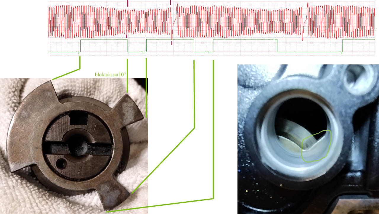 Jak się precyzyjnie dopasuje wał, to wałek ucieka (plus ktoś wrzucił wykres bez opisu, jaki dokładnie silnik, różni się od reszty). Może to wynikać z "precyzji" blokad (co było pokazane wcześniej) oraz metod pracy "mechanika" (wszędzie są jakieś luzy montażowe i możliwość przestawienia chociażby przy luzowaniu i dokręcaniu wariatora, a wynika to ze sposobu zablokowania wałka, wrzucenie klucza płaskiego 24 byle jak - tu by trzeba kolejną blokadę skonstruować!). Załącznik:
