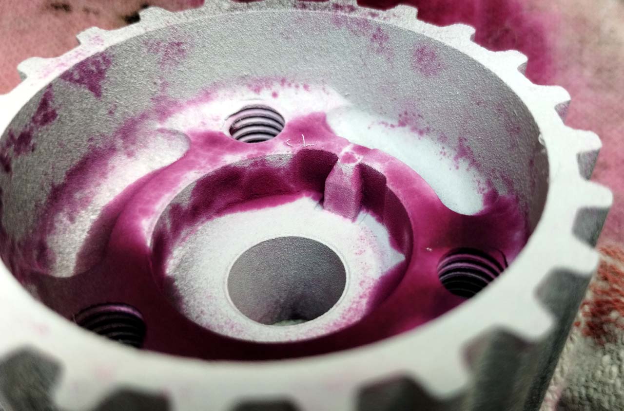 Jest prosta metoda na penetrant. Po umyciu barwnik ma wniknąć w ewentualne szczeliny, później się go "wywołuje" drugim środkiem (biały proszek, spray). Załącznik: