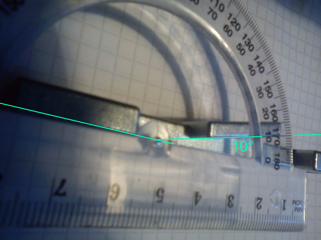 Udowodnione, że da się mierzyć z fotografii. Darujemy sobie ułamki stopnia i setne milimetra (blokada, to nie przyrząd precyzyjny). Załącznik: