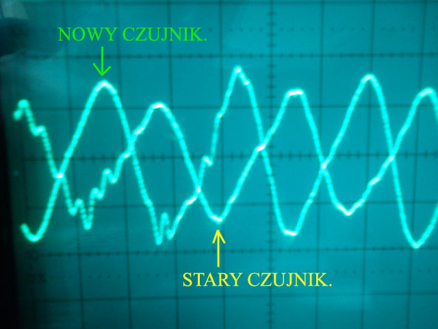 Stare czujniki położenia wału tak mają, że często działają, ale sygnał generowany jest słabszy, w porównaniu z nowym i to wystarcza, aby go "komputer" nie widział, chociaż przy diagnostyce może wyjść, że sygnał "jest". Co też zależy od temperatury (stąd typowa awaria Fiatów w stylu, że np. "nie zapala na ciepło, na zimno tak"). Porównałem kiedyś stary z nowym, niestety nie pamiętam ustawień na oscyloskopie (jakie to napięcia były, ale różnica widoczna). Na starym samochód już nie odpalał. Załącznik: