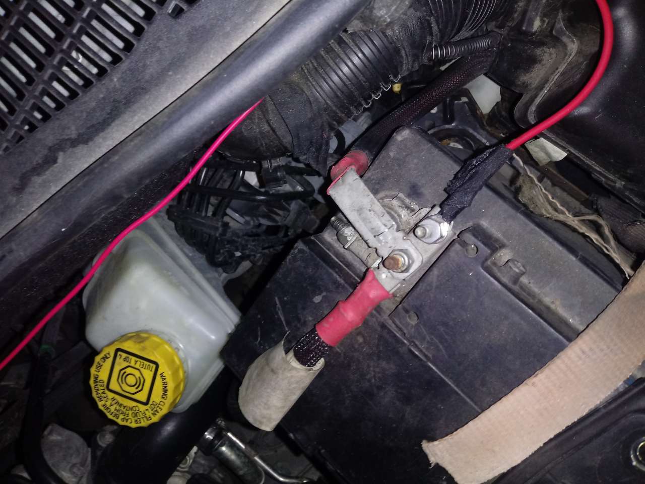 U mnie wygląda to tak dwa grube kable. Jeden idzie do skrzynki przy aku. Skrzynka na zdjęciu, a drugi w stronę silnika tak jakby do rozrusznika. Ten cienki to dodatkowe zasilanie do projektorów w drzwiach.