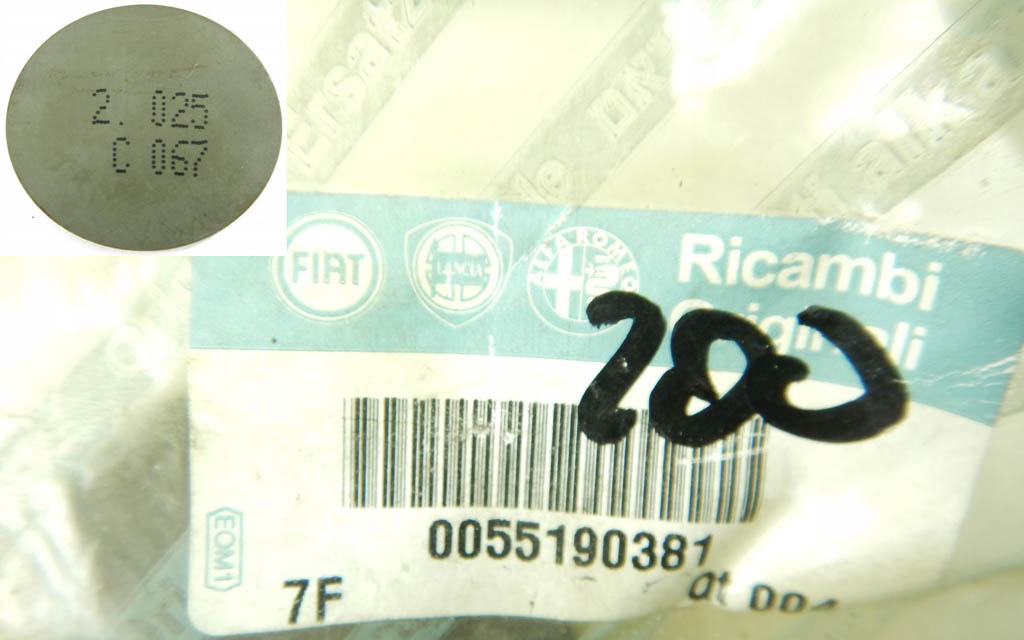 Czyli można dać 3 płytki 2,20 w miejsce obliczonych 2,21/22/23 oraz jedną 2,25 jako wyliczone 2,27. To znaczy z dwojga złego idziemy z tolerancją luzu "na plus" (większy luz = "za cienka" płytka). Wadą może być głośniejsza praca rozrządu (szczególnie na zimno), więc to też takie dobre nie jest. W sytuacji podbramkowej, klęska żywiołowa, koniec świata, itp., można by dokonać podmiany istniejących płytek z wydechu cylindra 4 na drugi (czyli wyjąć 2,333 i wstawić w miejsce obliczonego 2,268, luz byłby wtedy za ciasny o jakieś 6 setek). 16. Zakres grubości płytek w nowych Fiatach poszedł w dół (2-3 mm), średnica została. Starsze modele miały grubsze płytki (3-4 do 5 mm nawet), rynek jest obecnie zalany nimi, grubymi (można kupić wszystkie wymiary, hurtowo, w detalu, nowe, używane - dla nas, do Grande, są niestety bezużyteczne). Cienkich płytek prawie że brak. Jak ktoś zna przyczynę tej patologii, to niech napisze. Załącznik: