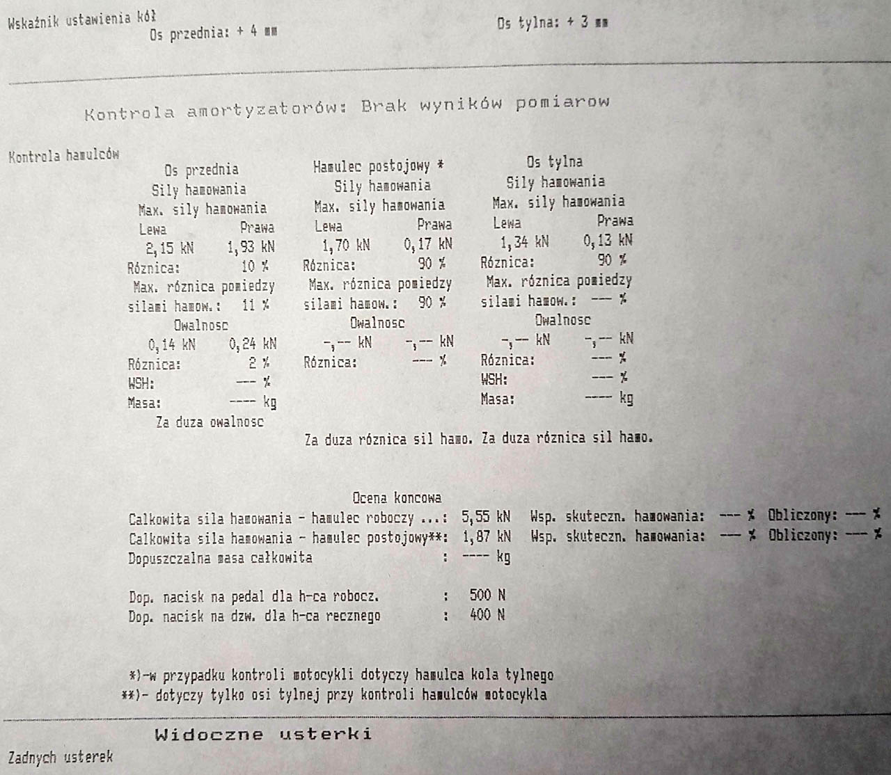pmx007p1 napisał(a): O ile zakład, że "wszystko" NIE było sprawdzone? Poza tym, "sprawdzenie" ma wiele znaczeń i poziomów (to mogą być same oględziny wzrokowe, albo pomiary, regeneracja, regulacja itp., itd.). Temu kolesiowi co się "bawi w mechanikę" pokaż ten dział forum (jest temat o bębnach): http://fiatpunto.com.pl/forum37.htmlUkład jest prymitywny...ale wrażliwy (samoregulatory, sprężynki/zawleczki, czystość płynu). Hamulec ręczny wpływa na główny hydrauliczny i odwrotnie. Problem może być: mechaniczny (hamulec zasadniczy, ale ręczny też może mu przeszkadzać), hydrauliczny, elektryczny (ABS). W samym kole, przewodach (zwłaszcza elastycznych) i na koniec w module ABS (np. od starego płynu oraz cofania tłoczków = wciskania brudnego płynu do modułu) i/lub pompie (ale to ostatnia rzecz jaka się psuje). Do diagnostyki (prawdziwej) mechanicznej i hydraulicznej, trzeba by dodać sprawdzenie błędów (moduł ABS). Oraz pomiary hamulców na SKP (jak ktoś nie wiedział, to można zbadać same hamulce, poza przeglądem, koszt nieoficjalnie to np. 20 do kieszeni, a 40 PLN gdy to oficjalne zlecenie przez biuro). Poprosić o wydruk z wynikami. Pewne typowe usterki wychodzą wtedy, a ogarnięty diagnosta też może będzie wiedział, gdzie jest problem (czy to coś w kole, czy w pompie) już w trakcie pomiaru (np. opory toczenia i nierówno narastające siły itp.). Pierwsze urządzenie wymieniłem a następnie udałem się na SKP i poniżej zdjęcie z wydruku że coś jest nie tak . Po tej wizycie mecher zabrał auto wymienił urządzenie nr 2  i przy okazji "odnalazł" uwalony cylinderek własnie w prawym tylnym kole. Po tym podjechałem na SKP ponownie i okazało się ze minimalnie prawe tylne jest lepsze od lewego .Myśle super sprawa załatwiona .Radość nie trwała długo okazało się na drugi dzień ze znowu tylne prawe hamuje na maxa i prowadzi to do niebezpiecznych sytuacji. W jakim iść kierunku ? bo już mam dość tego auta.