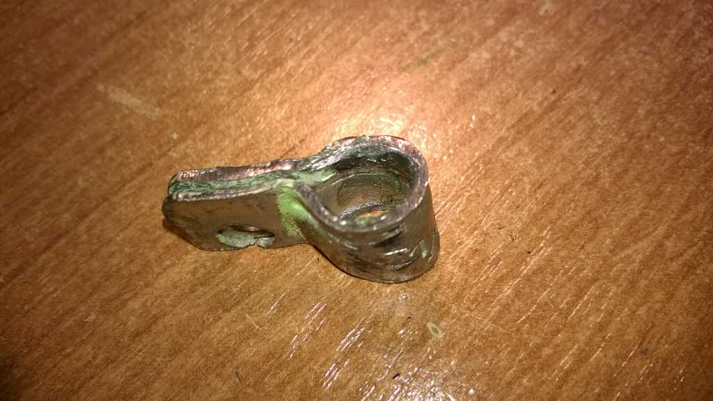 Ważne! Blaszka musi mieć końce zakończone sfrezowaniem, nie musi to być duże zeszlifowanie. Ja to zrobiłem kamieniem szlifierskim, okrągłym stożkowatym z dreamela. Jeżeli tego nie zrobimy, podczas wciskania bolca, zaczniemy "skrawać" plastik.