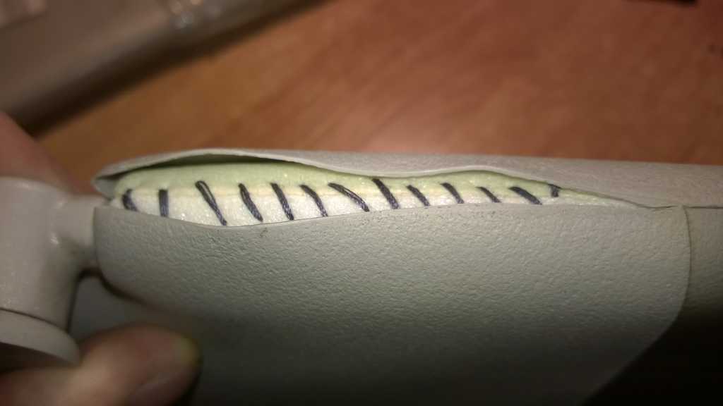 Ja postanowiłem białą gąbkę zszyć nicią. Nie miałem grubszej nici, więc złożyłem ją na pół aby nie przecinała gąbki. Tak to wygląda: