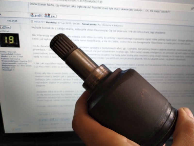 Nie zawsze trafisz na kogoś, kto dosłownie robił to, co ty planujesz. To tak nie działa w życiu, ogólnie (nie tylko w internecie). Ciekawe jak to było możliwe (nie do pomyślenia dzisiaj), że kiedyś ludzie bez internetu naprawiali samodzielnie samochody, RTV, AGD. Nie mając 100% pewności nadal warto zadziałać. Bo są poszlakowe informacje, że skrzynie 5-6 biegowe są w pełni zamienne. Ktoś musi być pierwszy i się podzielić w internecie. Dlaczego zawsze liczysz na innych? Na tej zasadzie przez następne 10 lat się nie dowiemy, znaczy nikt nie napisze prosto z mostu: "tak, pasują w 100%, zmieniłem właśnie piątkę na szóstkę, działa". W każdym temacie by tak było: hamulce, rozrządy (i blokady), luzy zaworowe. Dywagacje, ślepe małpowanie błędów/bzdur z serwisówek, plus "wiedza" podwórkowa z czasów PRL. Dodatkowo: jeśli robiłeś osobiście tyle skrzyń/sprzęgieł w kilku modelach, to logicznym działaniem była/jest dokumentacja pracy, pomiary, policzenie wypustek na wieloklinach itp. Jak nie ma danych, to tworzysz własną małą prywatną bazę danych (między innymi takie zachowania odróżniają fachowca od przeciętniaka, co tylko odsłuży 8h w pracy i zadowolony). Na przykład półośka (kielich) w Grande (skrzynia 5-b) ma 22 zęby i "średnicę" 24 mm, dalej 25 i 36 (uszczelniacz). Skoro masz takie super złomy w okolicy, to dlaczego nie sprawdzisz na żywo, czy np. półośki z Grande, czy tam Doblo 1,4 8V wchodzą do skrzyń 6-biegowych (z Grande, czy np. Bravo 2)? Problem? Ktoś ma za ciebie sprawdzać? Poza półosiami druga sprawa to "wieszaki" (a w związku z nimi obudowa tylna może mieć różną liczbę otworów). Trzecia kwestia to wybierak (teoretycznie też są zamienne). Jeszcze wałek wejściowy/sprzęgłowy. Załącznik: