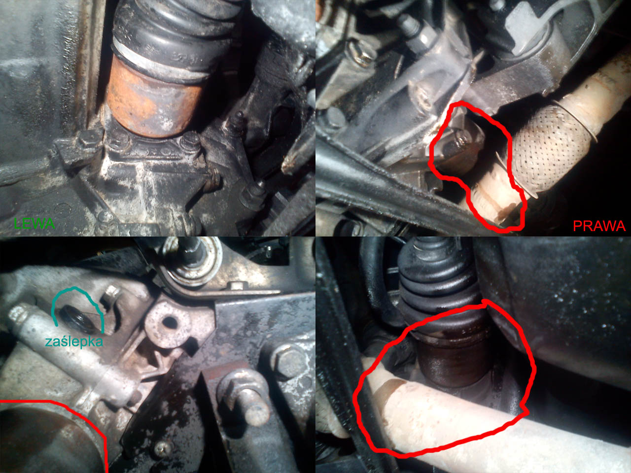 jest poradnik), bo Fiat zrezygnował z osłony (starsze modele miały). Skrzynia jest wtedy mokra od góry oraz olej cieknie głównie (lub tylko) na krótszą (lewą) półośkę. Prawa (długa) powinna być sucha, a jak nie jest, to prawdopodobnie padł uszczelniacz.