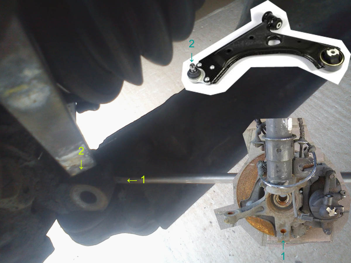 Dalej łączniki stabilizatora (jeden z przegubów, dolny lub górny, obojętne), bo przeszkadzają.