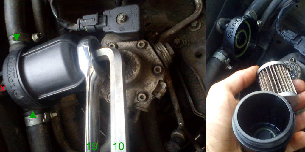 Różne poradniki w internecie (np. na YouTube) pokazują, aby wymontować całkowicie taki filtr z samochodu i wymianę wkładu zrobić "na stole" (np. w imadle). Ale on powinien się dać odkręcić w samochodzie. Uwaga jest taka, że to trzyma bardzo mocno, nie można polegać tylko na mocowaniach korpusu filtra, trzeba mocno trzymać też za króćce/przyłącza węży.