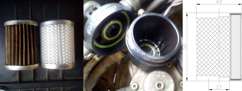 Najważniejsze: wymiary (u mnie był filtr wysoki na 52 mm, średnica 42 mm, otwór 17 mm - nie istotne, czy ma jeden otwór, czy przelotowy z dwoma). Możecie mieć inną wersję, uważać.