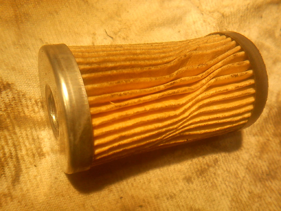 4. Porównanie starego i nowego filtra. Zanieczyszczenie widać (ciemniejszy kolor), chociaż bez tragedii (pojeździł by jeszcze), praktycznie brak zanieczyszczeń ciekłych (zdarza się brązowa oleista maź, kilka kropel to nie powód do obaw).