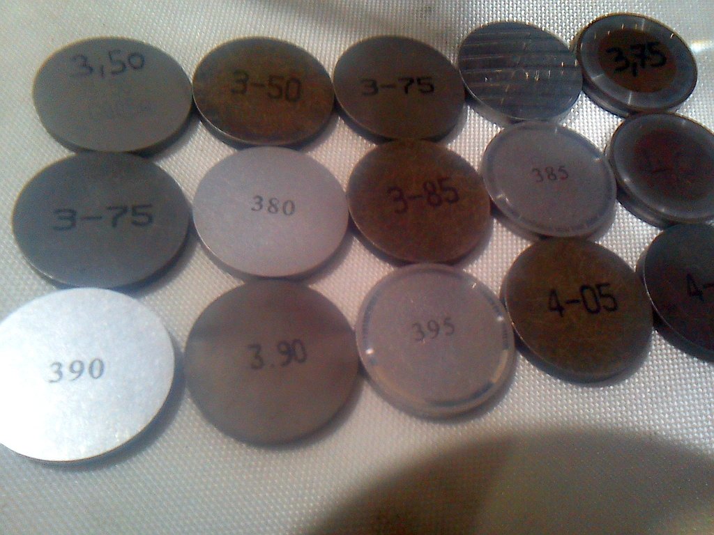 Co do materiałów i szlifowania (NIE polecane), to kwestia była poruszona w poradniku regulacji luzów w Grande. Pokazane są amatorskie przełomy i wytrawianie płytek ("zgład metalograficzny"): http://fiatpunto.com.pl/topic58838.html ! Płytki są utwardzane (z zewnątrz twardsze, "rdzeń" miękki), czy to stare grube, czy nowszy styl (cienkie do Grande/EVO itd.). Także nie ma się co martwić, czy "wytrzyma" (a wykończenie - kolor - nie ma znaczenia, czy ona jest ciemno szara, czy "srebrna"). PS W tym przykładowym sklepie są wszystkie rozmiary (o ile są na magazynie, a nie tylko jako wirtualna oferta)... 3,75 https://autowanda.pl/czesc/plytka-regulacyjna-luzu-zaworowego-febi-bilstein-07554,1vchu?gru=19&typ=3ml3,80 https://autowanda.pl/czesc/plytka-regulacyjna-luzu-zaworowego-febi-bilstein-07555,1vchv?gru=19&typ=3ml3,85 https://autowanda.pl/czesc/plytka-regulacyjna-luzu-zaworowego-febi-bilstein-08288,1vcvt?gru=19&typ=3ml Wystarczy zacząć regulować, to po 2-3 takich akcjach masz prywatną kolekcję płytek, nie trzeba kupować (np. regulacja 7 zaworów wymaga dokupienia tylko 1 sztuki).