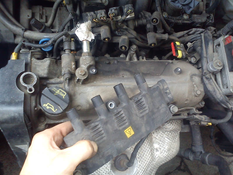 3. Moduł cewek po zdemontowaniu oczyścić i obejrzeć, czy nie popękany, przypalony, itp. Można też sprawdzić rezystancje. Podobno są tam 4 niezależne cewki (w odróżnieniu od starszych modeli, gdzie najpierw była jedna cewka i rozdzielacz - np. Uno, a później dwie cewki obsługujące po 2 świece na raz - np. Punto 1). Strona pierwotna będzie oczywiście w złączu sterującym, rezystancje mają mieć coś około pół oma chyba. Ze stroną wtórną (wysokiego napięcia) jest już gorzej. Poradniki podają, że ma być około 5-6 kilo omów. Tyle, że prawdopodobnie zaszły zmiany u producenta modułu i chyba szeregowo z uzwojeniami są diody wysokonapięciowe (stosy struktur diodowych). Dlatego próba sprawdzenia multimetrem pokaże przerwę (u mnie tak jest, chyba, że wszystkie 4 cewki padły na raz). Także nie panikować, jak auto normalnie jeździ, to raczej jest OK (chociaż cewka może robić 2 iskry, jedną wewnątrz, a drugą na świecy). https://warsztatowiec.info/po-co-dioda-w-cewce/https://www.hella.com/techworld/pl/Technologia/Elektryka-i-elektronika-samochodowa/Cewka-zaplonowa-2886/Załącznik: