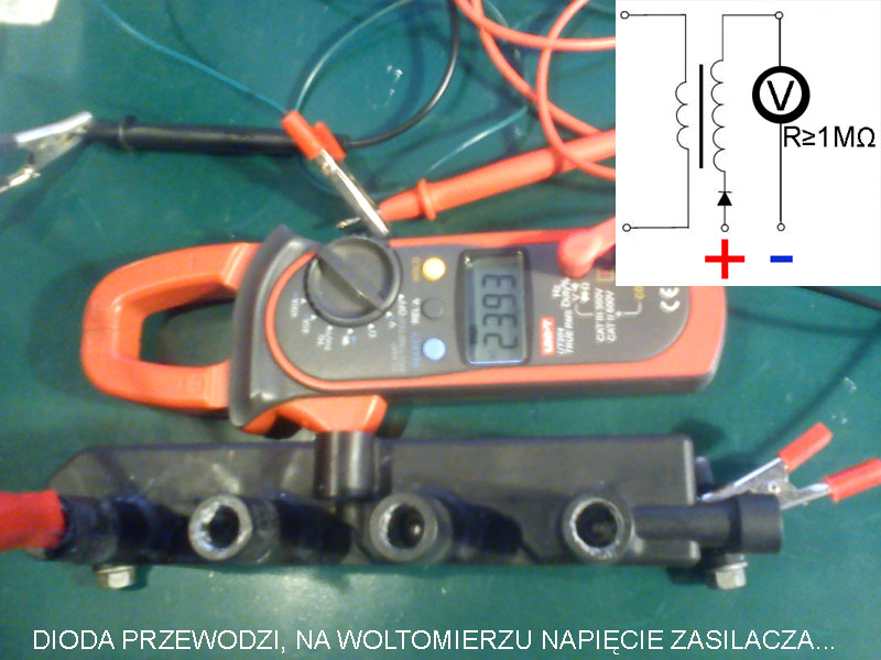 Komentarz do pliku: Polaryzacja zgodna z diodą cewki - widzimy napięcie zasilacza (tu było 24 V).