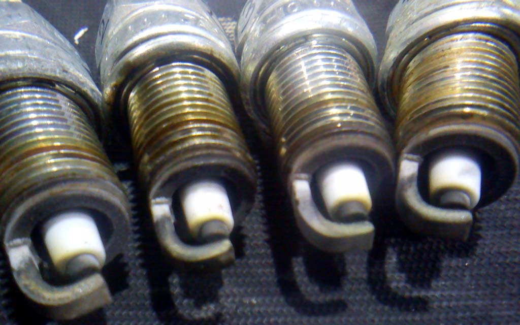 8. Stare świece wyglądają poprawnie, normalne zużycie, tylko przeciągnięty okres wymiany. Poprzedni właściciel zaniedbał. Nowe świece mają mieć 1,0 przerwy na elektrodach, tutaj był już przedział 1,3-1,4 mm. Trochę za dużo (podobno grozi to uszkodzeniem cewek - może dlatego jednak mają przerwę strony wtórnej, a nie żadna dioda). Jeśli ktoś może, to poproszę sprawdzić u siebie cewki (czy miernik coś pokaże, czy "przerwa"). Załącznik: