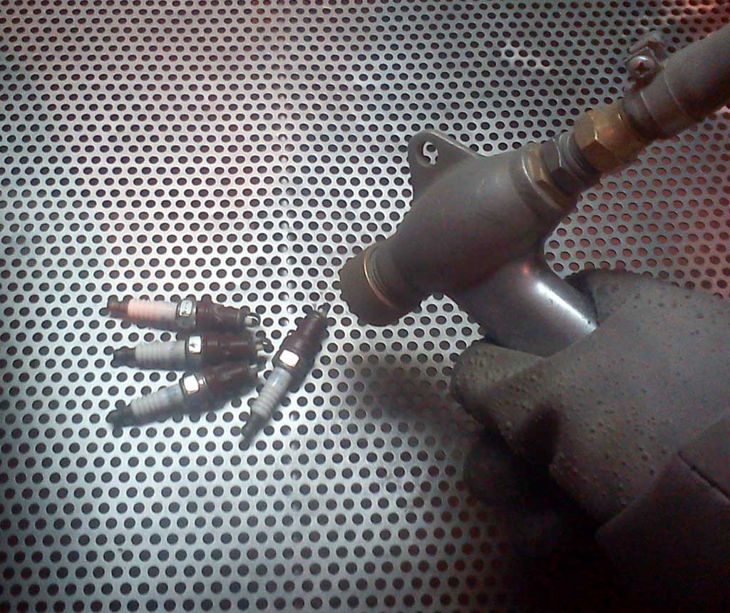 6.Najważniejszy punkt programu - obowiązkowe czyszczenie brudu zalegającego w gniazdach świec! Najlepiej rozpuszczalnikiem i sprężonym powietrzem (ewentualnie czymś, co je zastąpi w działaniu, nie każdy ma kompresor), warunkowo można by samym rozpuszczalnikiem pod ciśnieniem (póki puszka nowa, pełna) wymyć piach, itp. Bez czyszczenia nie wolno odkręcać świec (syf wleci do silnika i "wyszlifuje" cylindry). Załącznik: