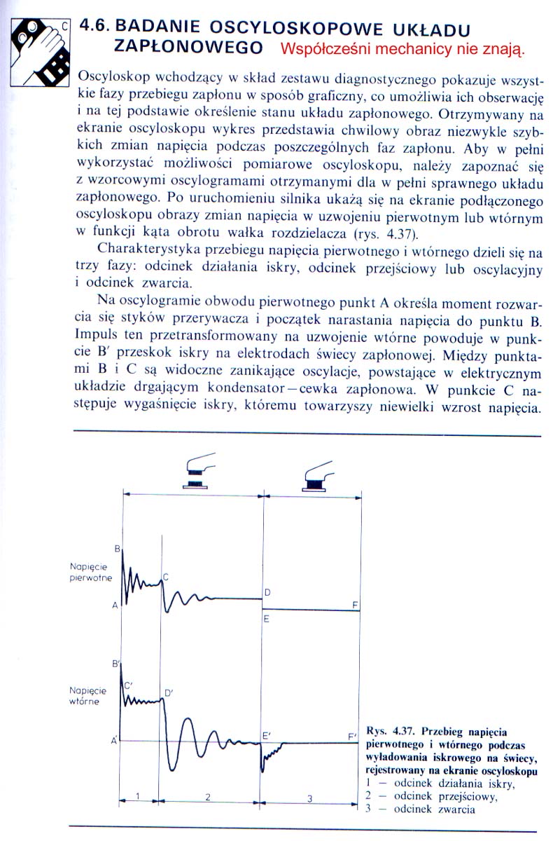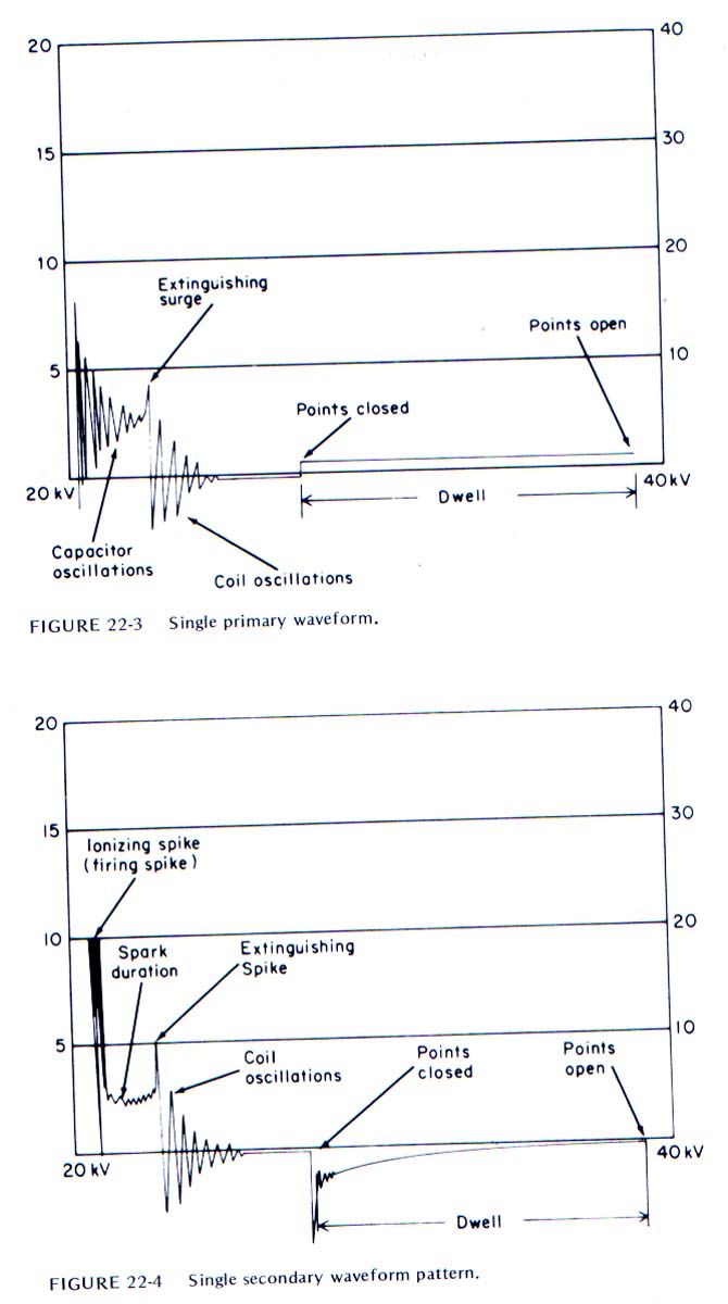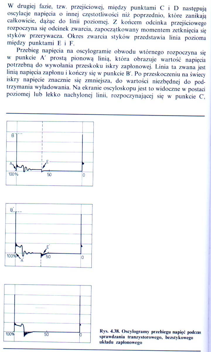 Znowu, typowe przebiegi po stronach pierwotnej i wtórnej w układzie mechanicznym...w elektronicznym będzie prawie to samo. Tu też włączenie cewki (rozpoczęcie "ładowania") pokazują po iskrze. Szczegół, kosmetyka. Załącznik:
