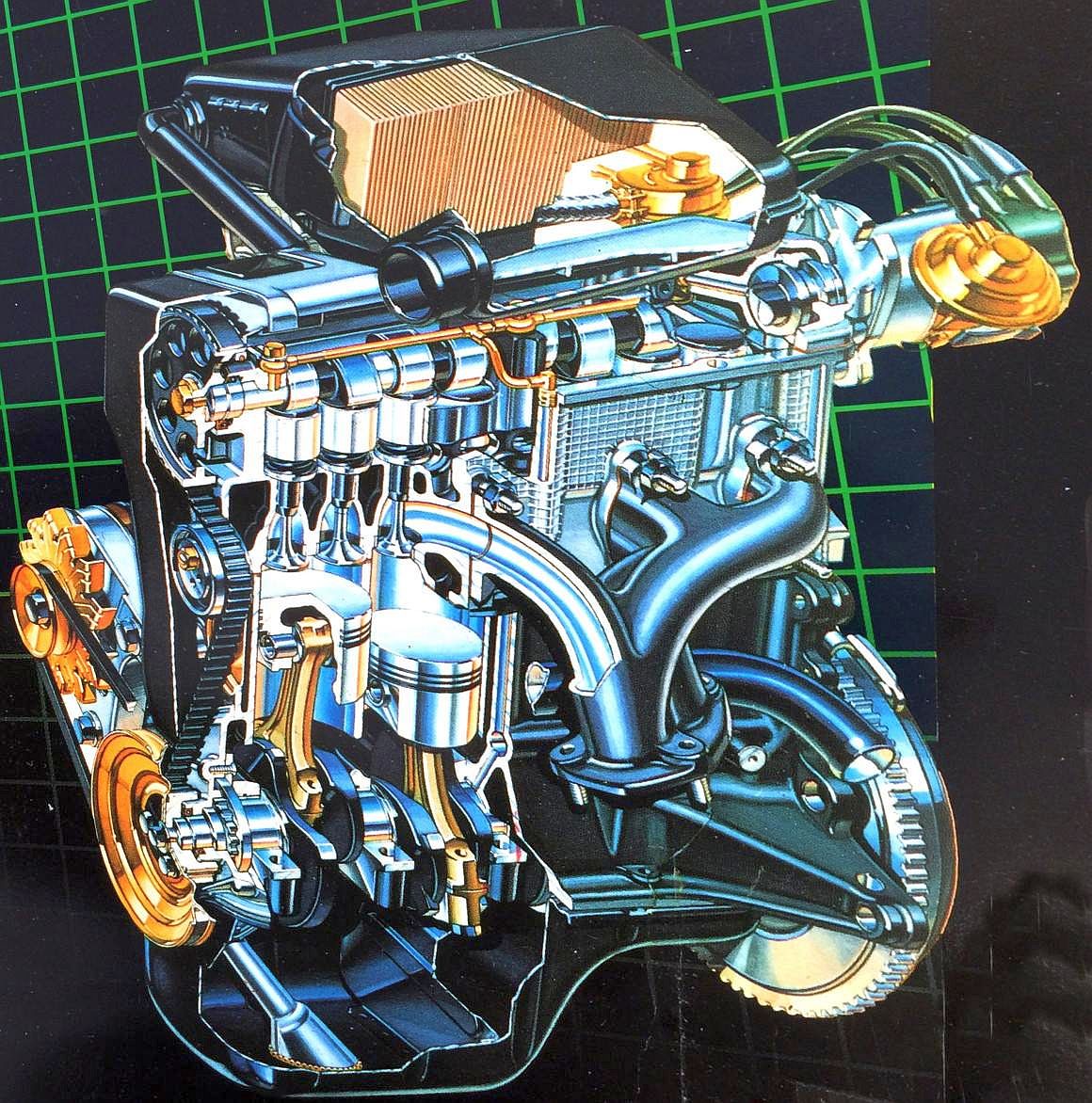 Wyszukiwanie po obrazach daje taki wynik (najlepsze co się dało znaleźć). Taka ciekawostka (jak to 8V było składane na linii montażowej). Widać, że to chyba wersja nie-europejska, bo ma mocowanie dla hydraulicznej pompy wspomagania, nad filtrem oleju.