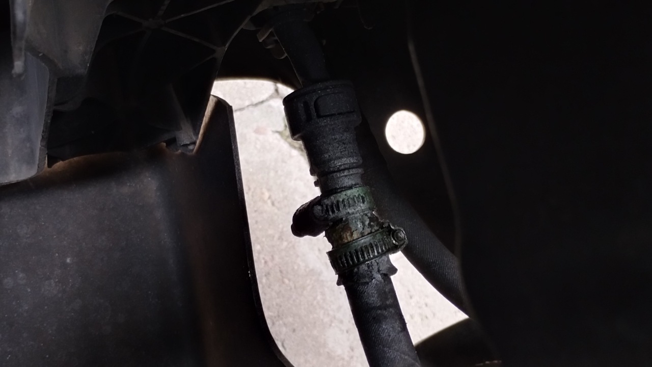 Dzisiaj zająłem się tym przewodem. Wyczyściłem dokładnie z tego zacieku, i złapałem na dwie opaski, zobacze za jakiś czas czy wyciek nadal sie pojawia.