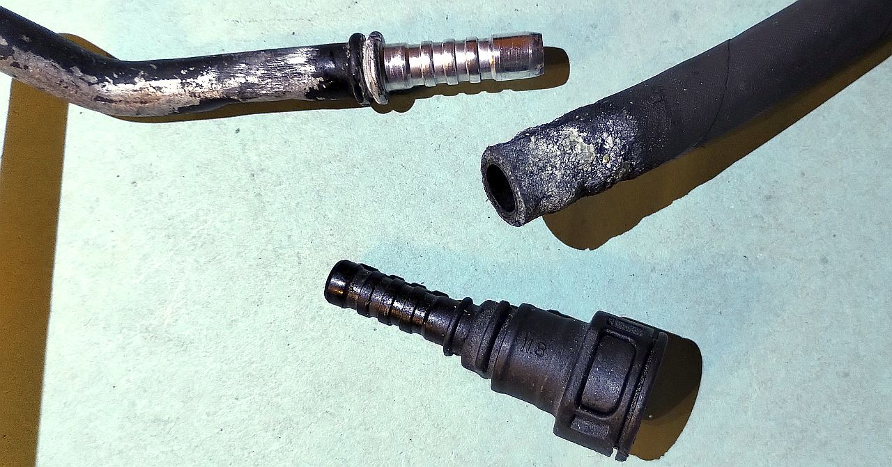 Witam serdecznie, Ostatnimi czasy zauważyłem wyciek z węża klimatyzacji, i pęknięte zakucie przy plastikowej złączce. Chciałbym to rozwiązać, nie wydając 700zł na nowy przewód. Ktoś już to naprawiał z dobrym efektem ?