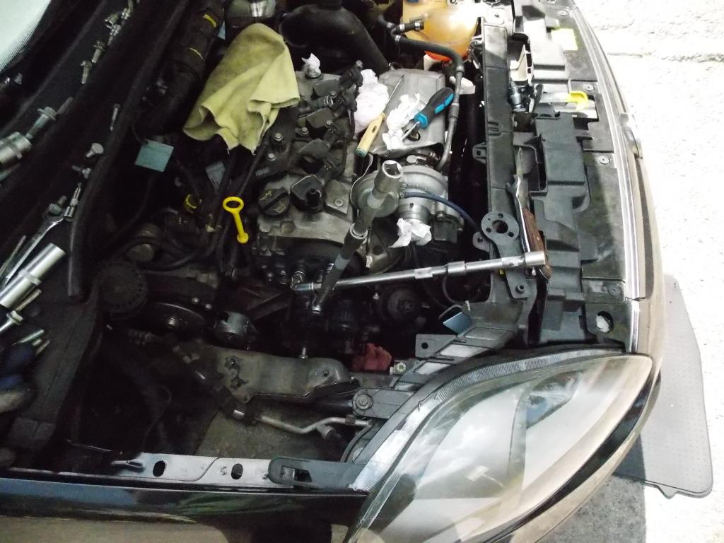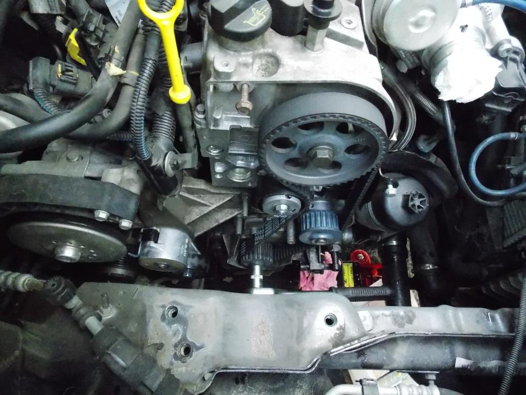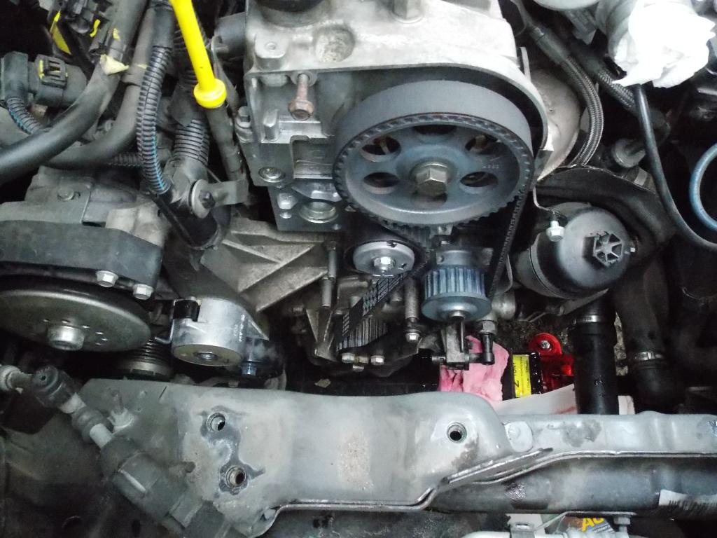 Napinamy pasek za mocno!!! na lekko poluzowanym kole pasowym wałka rozrządu. Napinacz do zderzaka i jeszcze trochę.