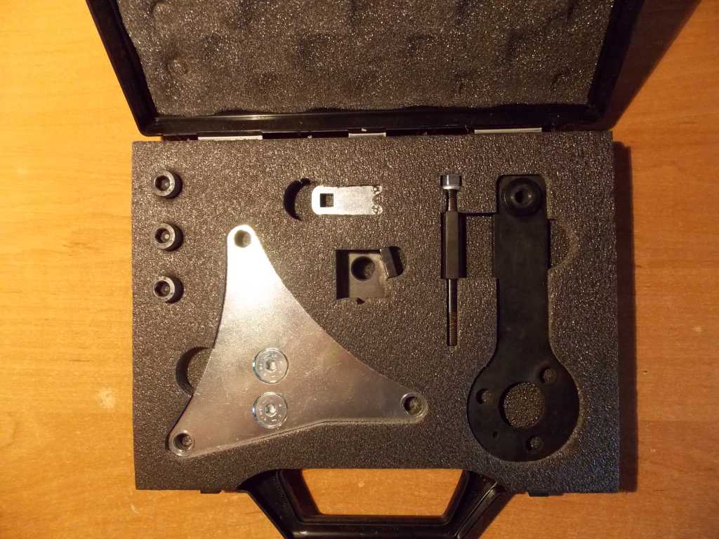 Montujemy blokadę wału korbowego. Nie przejmować się jakby na pierwszy rzut oka nie pokrywało się. Po prostu należy użyć siły. W zależności od położenia tłoka na wał działa różny moment przez co pasek z 1 i 2 strony jest naprężony w różny sposób.