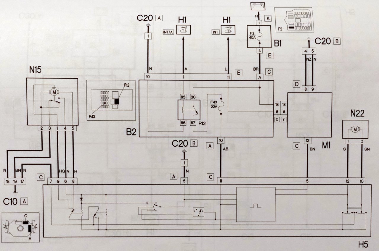 Opisów nie ma, ale N15 to mechanizm wycieraczek, N22 spryskiwacz (kręci lewo/prawo, stąd pryska na przód lub tył, są zaworki jednokierunkowe), H5 nie wiem (manetki, albo jakiś moduł pośredni np. w kolumnie kierownicy). Inne literki to bezpieczniki lub całe skrzynki bezpieczników/przekaźników ("B"), główne sterowniki typu "Body" i ECU to na literę "M", główne punkty masy "C".