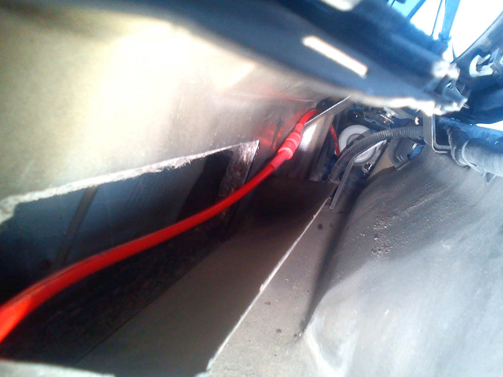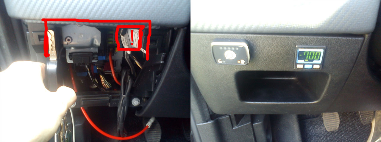 Prowadzenie przewodu powinno być przemyślane, aby go gdzieś nie wciągnęło, ani nie przegrzewało (np. nagrzewnicy nie powinien dotykać). Radia nie trzeba wyjmować (było wyjęte do wymiany żaróweczek podświetlenia), tylko osłonę boczną tunelu przy kierowcy.
