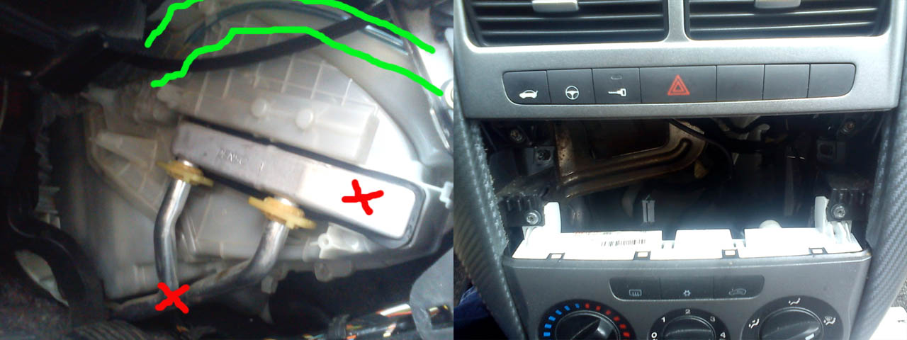 Trochę gimnastyki, podrapane ręce, ale wężyk wyłazi we wnętrzu deski rozdzielczej. Dostęp jako-tako jest.